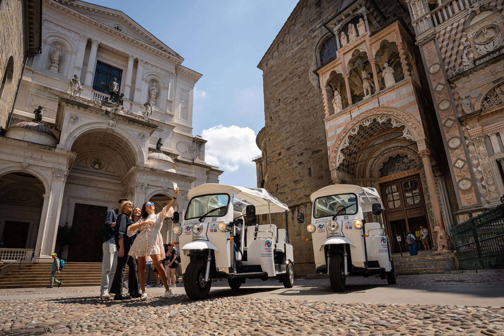 A bordo del Tuk Tuk vi accompagniamo tra le vie storiche di Bergamo Alta: Piazza Vecchia, Via Colleoni, le Mura veneziane e i belvedere piΓΉ iconici.